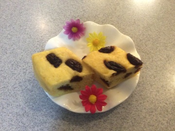 4、模具内薄薄涂一层油(防沾),放上一些葡萄干