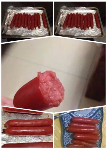 1.香肠用小刀在表面直划出约0.5公分的深刻痕。