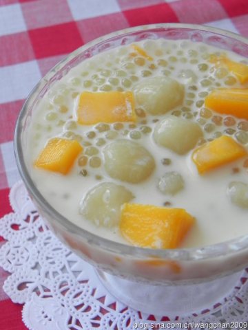 中型芒果两个,速冻小圆子一小包,白糖半量杯,水半量杯