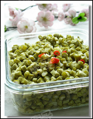 1. 把豆角洗净。 2. 把豆角水一定要沥干。 3. 把豆角切碎。 4. 放少许盐调味。 5. 装入消毒瓶中。 6. 将小盆盖在瓶口上。 7. 把瓶子倒过来,将水放入小盆里。(每天更换一次水)现在天气比较热,放个2至3天,颜色变黄,开盖有股酸香味即可。