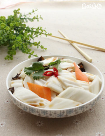 第二:辅料可以任意选择,记忆中妈妈最常见的搭配是黑木耳和胡萝卜,小时候的我对颜色感十分强烈,看到黑乎乎的黑木耳尝尝拒之千里,妈妈总会对我说平常吃肉肉多了,肚子里会留下油脂,黑木耳可以把肚里的油刮掉,多吃点就可以长漂亮,年幼无知的我常常被妈妈以这样游说的方式把不喜欢的食物收于口中。长大后开始接触营养学,知道黑木耳是一种药食两用的菌类植物,营养丰富,有较强的吸附作用,经常食用利于使体内产生的垃圾及时排出体外,被誉为“人体的清道夫”,可以养血驻颜,令人肌肤红润,容光焕发,也渐渐明白了妈妈小时候对我说的那句话,只是妈妈没有营养知识,只能用她对食物的理解转化为自己的语言,让家人更多享受食物的乐趣。