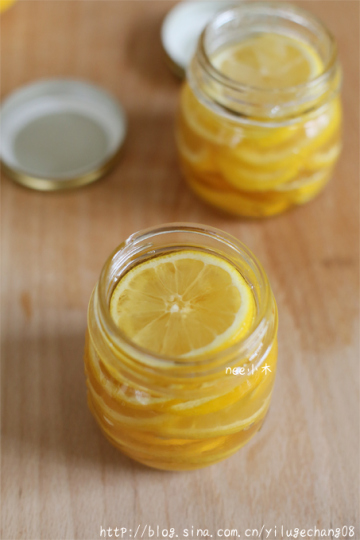 5、喝的时候用干净的筷子取一片放入杯中,再倒少许浸泡柠檬的蜂蜜水,用温开水冲泡。冲调柠檬蜜时不要用烫水,蜂蜜中的营养成份会被破坏,详细原因可度娘。