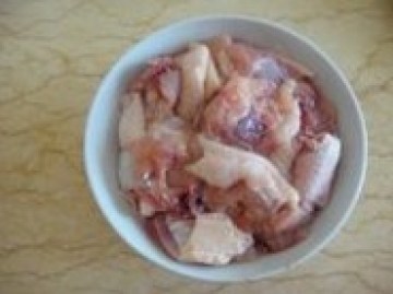 2.斩好的鸡块洗净,放入碗中,加入适量料酒