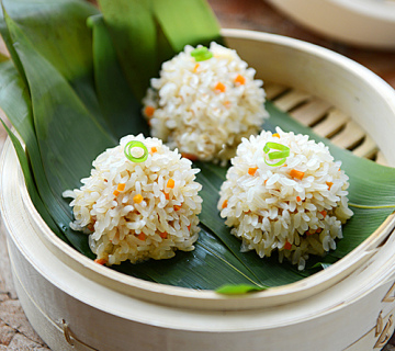4、可以在蒸笼或盘中铺上一层粽子叶,让珍珠丸子含有竹叶的清香味。