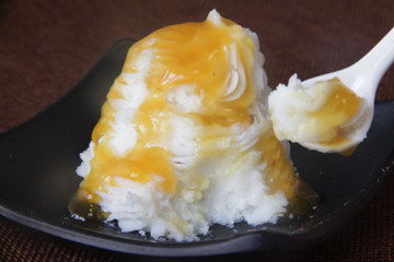 3:加入适量的炼奶和牛奶搅拌成顺滑