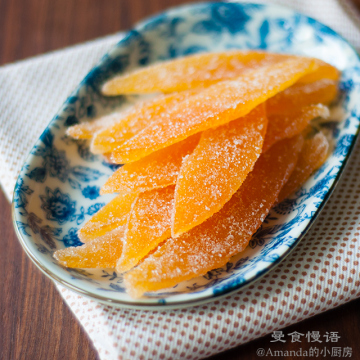 2、果皮和糖的比例大概是1:1,就是处理好的果皮有多重,就用多少细砂糖。