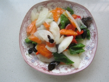 第一种:美食美味的山药胡萝卜青红椒做法