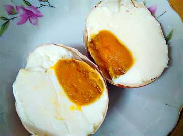 3、我通常21天就会取一颗咸蛋煮来试吃。