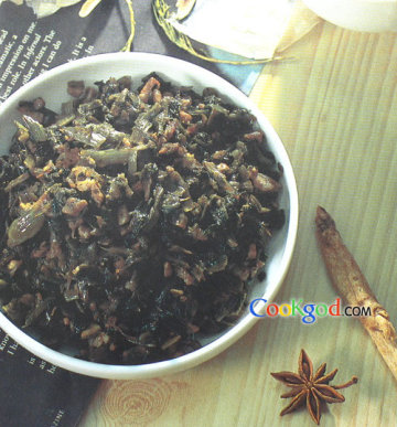 成雪里蕻要反复冲洗,并浸泡透。雪里蕻喜油,炒制时要煸透再煨至熟,最后用旺火收汁。