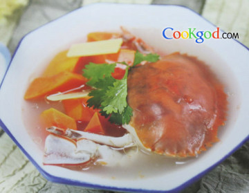 用料原材料:大闸蟹250克,木瓜100克,姜10克,清汤500克。调味料:盐5克,鸡精3克,糖1克。