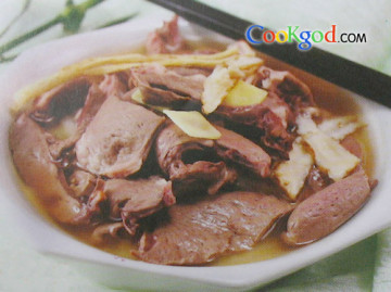 将其与酱油、姜、茴香、盐、清水各适量煨炖至熟后,去当归,放入少许味精调匀即成。