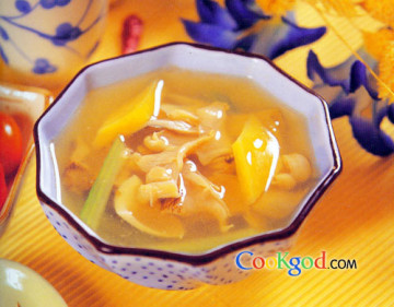 第四种:家常菜菜谱象拔蚌北菇鸡汤做法