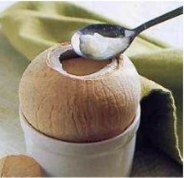 (4)取出椰壳,注入椰浆燕窝内,即可上桌。