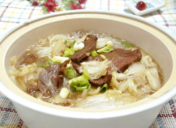 第三种:家常菜菜谱干切牛肉白菜粉丝煲做法