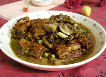 第三种:家常菜菜谱排骨炖雪菜蘑菇做法
