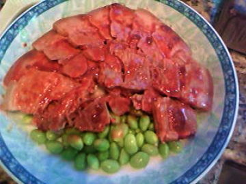 盘底铺啥,跟着感觉走。我家冰箱里有青豆,所以就上了青豆。可能,铺番薯、土豆都可以的吧。