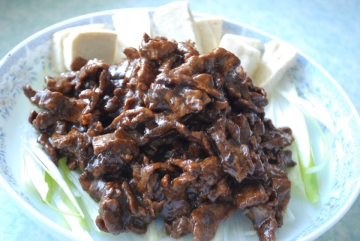 出锅摆在葱丝上面,旁边摆上大豆腐