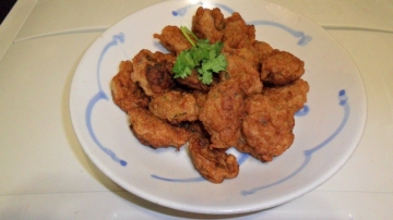 4.当油锅烧到六成热的时候,转为中火,一个一个地把做好的肉丸下锅,等肉丸浮到油锅上层,呈现出金黄金黄的颜色的时候,就算是炸好啦!