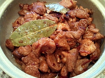 3、相继入其它配料,最后加香叶;料酒要足够多;