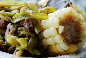 第一种:家常菜菜谱牛肉玉米炖豆角做法