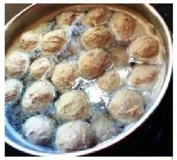 图7. 注意煮肉丸的水千万别让它沸腾, 避免肉丸膨胀过度, 影响口感。