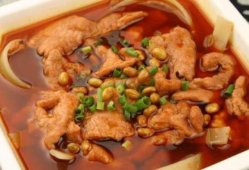 顾名思义水煮肉片一般都是水煮的,而此菜根据水煮鱼改良用油浸熟,口味更好。