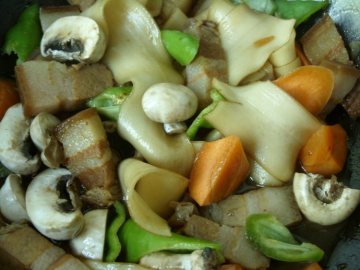 土豆粉 胡萝卜、青椒、蘑菇 五花肉