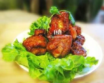 6、临出锅撒葱花芝麻7;注冰糖一次放完要使汤达到成菜的香甜味:压排骨的汤千万不可多不可少 一份菜的量,使收完汁刚好合适没有倒的。不然会影响菜的浓郁感!压时加醋那是为了丰富口感一定要少起个调味作用即可。最后收汁时在加入就定味了醋含水份所以也不要等到最后才放会影响菜的感官和口感,但醋放早了会挥发所以一定要把握好时间或时度增加醋的量,柑橘或菠萝稍和排骨一起烧一下使主料含果香,但也不可烧过了应为这两种水果加热会变酸有一定的酸度也会影响菜的味道,在个就是水果本身的形态会走很大的样从而影响感官,要果香容入果酸适度形态较完整才佳!另外还得注意它本身也含水份!!注炸时不可过了本身含糖较高过火颜色会变深再经过烧收颜色会变黑!!!应为是熟的所以油温可八成左右一是外酥里嫩二是外面集聚的热化就会收缩从而使里面的鲜香物事锁住而保住味道的质量!!糖要提前抄制
