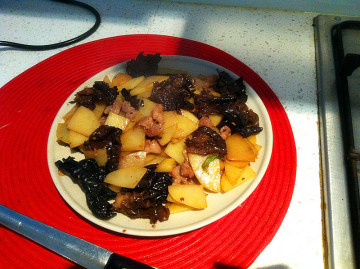 第四种:家常菜菜谱木耳土豆炒熏肠做法