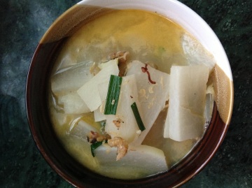 起锅前加盐和鸡粉,最后放点葱花。这道菜煮出来的烫是乳白色的,汤有种萝卜的甜味。