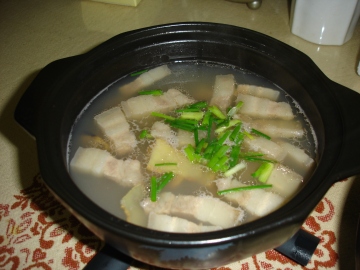 1.等粥煮到八成熟的时候,再放烧骨和菜干(前提要先泡开)下去。