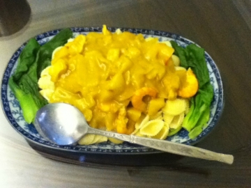 咖喱、意粉、鸡肉粒、土豆粒