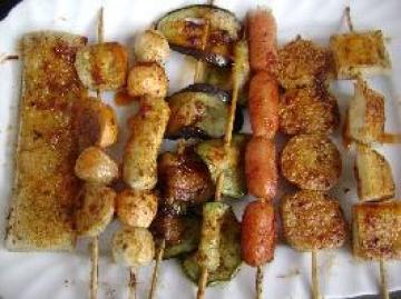 2、烧烤的时候直接烤熟就可以吃了,也不用什么蘸料了。鱼丸类的刷点油,放点辣椒面、盐就行了。