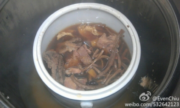 6.前后用了三个半小时,至到汤由白色变成深酱色,关火。