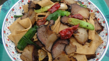 第一种:家常菜菜谱腊肉焖豆腐皮做法