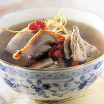 枸杞子20克,羊肉200克,葱20克,冰糖30克,黄芪30克,姜15克,料酒20克。