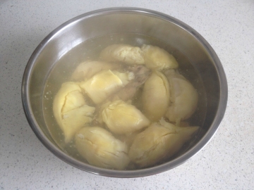 榴莲取肉去核,鸡取胸肉,放冰糖加水隔水炖1个半小时