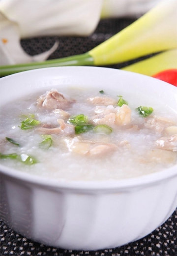 3.最后,将洗净的白萝卜叶切成碎末撒在粥上即可。