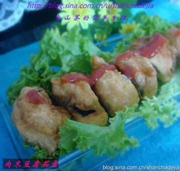 第一种:家常菜菜谱肉末豆腐茄盒做法