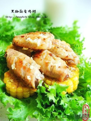 鸡翅中10个,黑胡椒碎,玉米1根,蒜1头