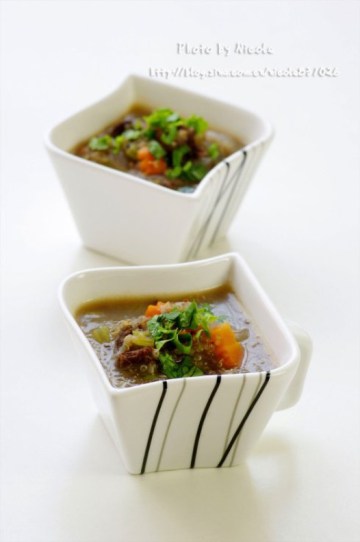 第一种:家常菜菜谱香芹牛肉藜麦羹做法