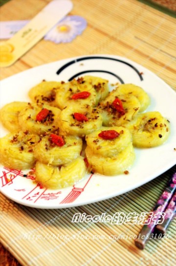 5)锅中烧水,水开后放入香蕉隔水蒸,8分钟即可。