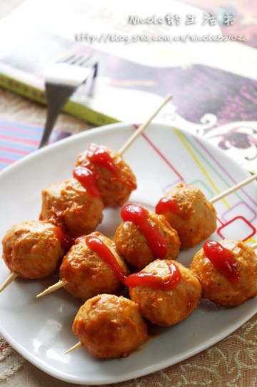 12.盛出肉丸,待温度稍凉,用竹签穿串。