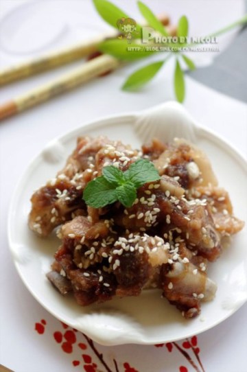 排骨,糖,醋,酱油,盐,油,白芝麻