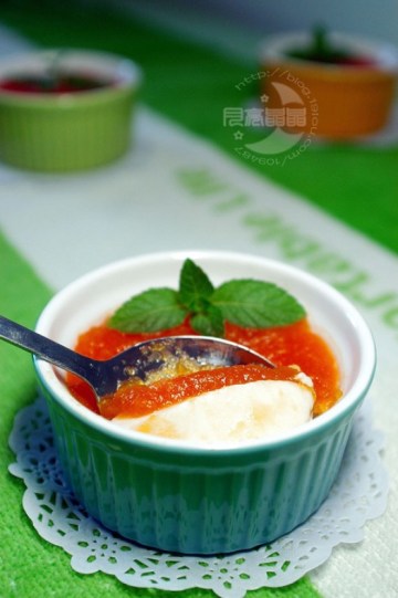 4.食用时将木瓜泥淋于奶酪上,也可加些蜂蜜一起食用。白嫩肌肤、活氧、抗老化,还可以淡化斑点、丰胸美白喔!