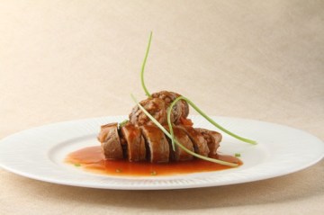 10.取出后,将牛肉卷切片装盘,然后将汤汁滤出后收汁,淋在牛肉卷上即可