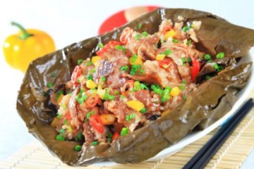 第三种:家常菜菜谱荷叶糯米蒸排骨做法