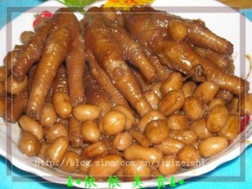 第一种:家常菜菜谱花生焖鸡脚做法