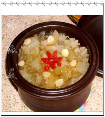 第四种:家常菜菜谱冰糖银耳南北杏炖雪梨做法