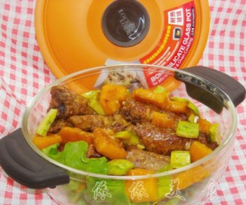 1.平底锅刷一层薄油,放进排骨、南瓜、西葫芦,中火煎;排骨、南瓜、西葫芦煎至一面金黄,翻面同样煎至金黄;把南瓜、西葫芦放进耐热容器,洒一层薄盐;把排骨铺在南瓜、西葫芦上面